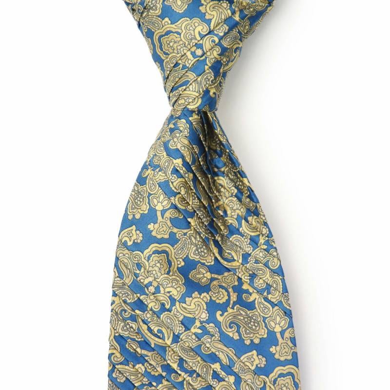 STEFANO RICCI【ステファノリッチ】31010 011 プリーツネクタイ シルク ペイズリー キャメル×サックスブルー