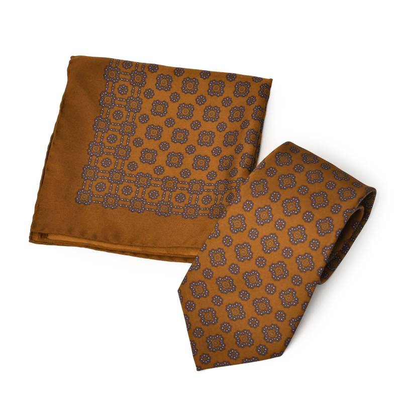 STEFANO RICCI【ステファノリッチ】41101 009 ネクタイ チーフ シルク 小紋 総柄 ブラウン×ブルー