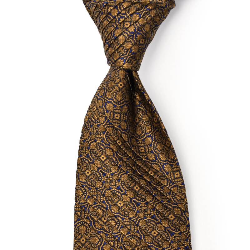 STEFANO RICCI【ステファノリッチ】33016 005 プリーツネクタイ シルク ボタニカル 小紋 ブロンズ×ネイビー