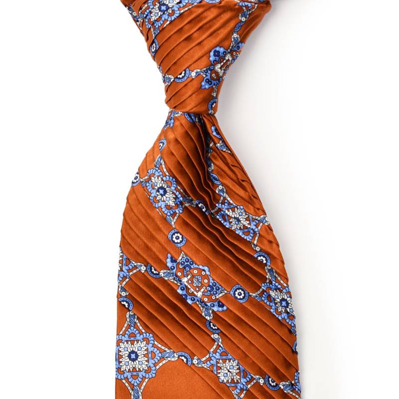 STEFANO RICCI【ステファノリッチ】31201 002 プリーツネクタイ シルク マジョリカ プリント オレンジ
