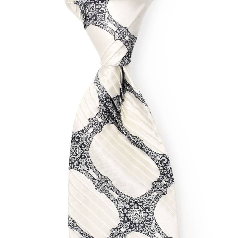 STEFANO RICCI【ステファノリッチ】35200 002 プリーツネクタイ シルク 総柄 ホワイト×ブラック