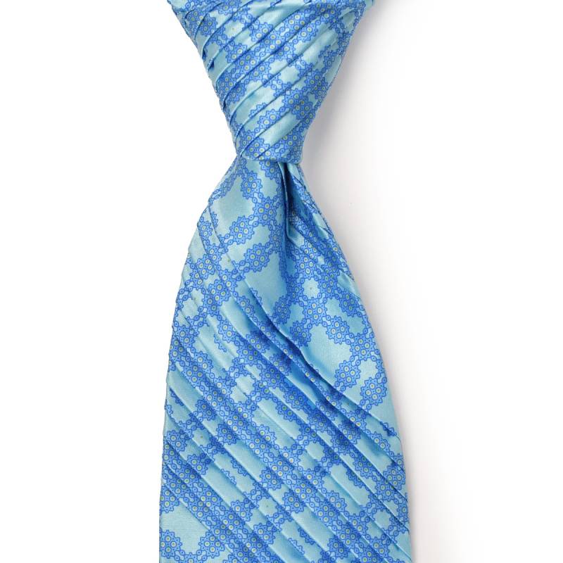 STEFANO RICCI【ステファノリッチ】35035 001 プリーツネクタイ シルク 総柄 ライトブルー×ホワイト