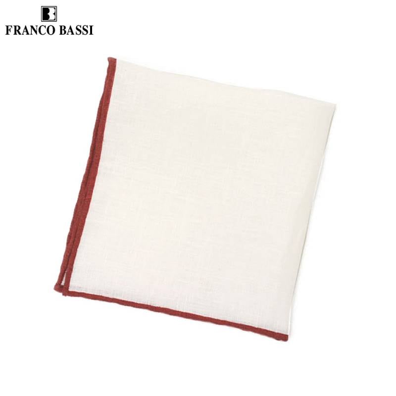 FRANCOBASSI【フランコバッシ】チーフ 1003/2 リネン 無地 ホワイト×レッド