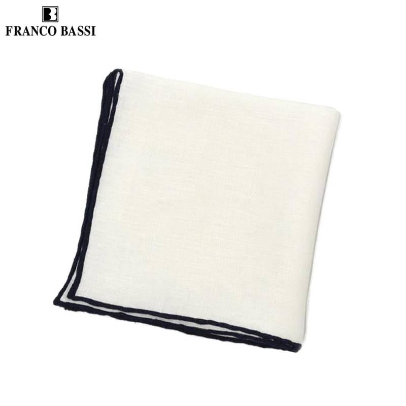 FRANCOBASSI【フランコバッシ】チーフ 1003 3 リネン 無地 ホワイト×ネイビー