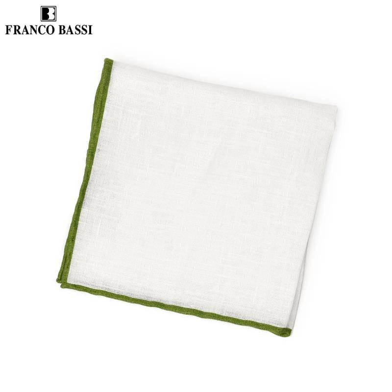 FRANCOBASSI【フランコバッシ】チーフ 1003/7 リネン 無地 ホワイト×グリーン