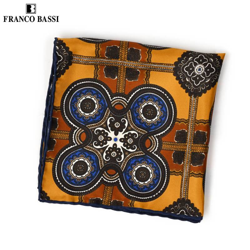 FRANCOBASSI【フランコバッシ】チーフ U23E 8051 3 シルク ネイティブ柄 ブルー×イエロー×ベージュ