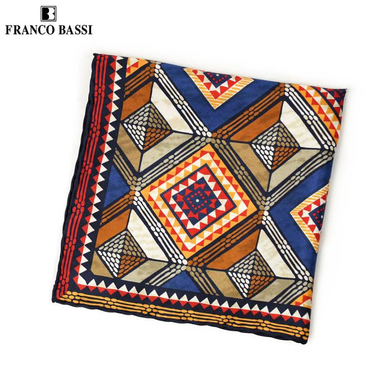 FRANCO BASSI【フランコバッシ】チーフ B113-R 7 シルク ジオメトリック ブラウン ライトブルー