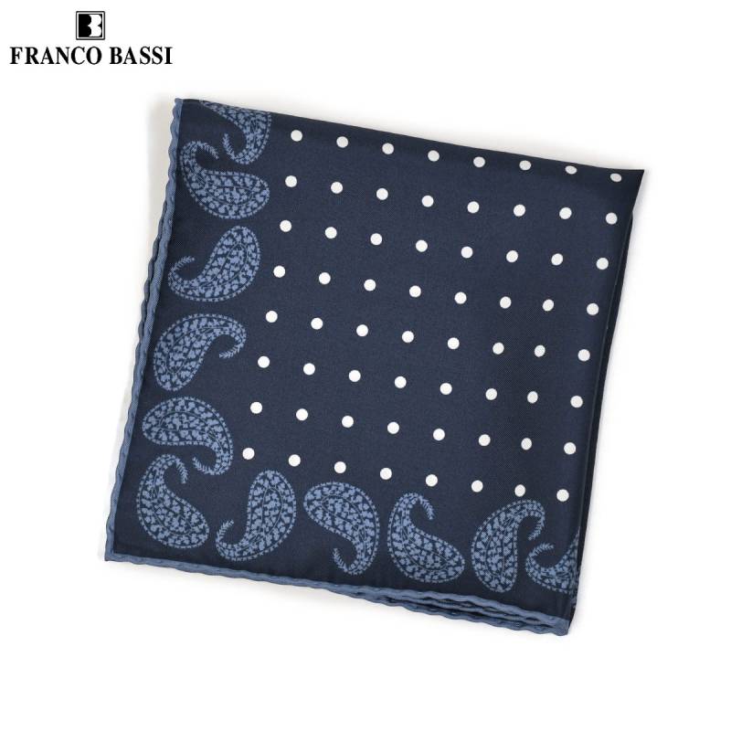 FRANCOBASSI【フランコバッシ】チーフ U24E 8071 3 シルク ドットペイズリー ネイビー×ホワイト