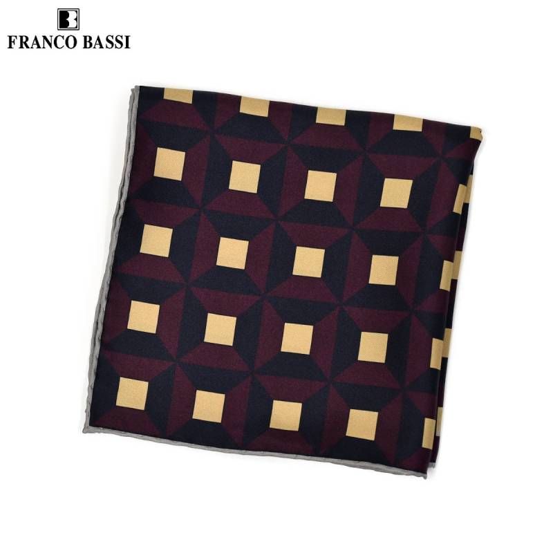 FRANCO BASSI【フランコバッシ】チーフ B113-R 1 シルク ジオメトリック ボルドー ネイビー
