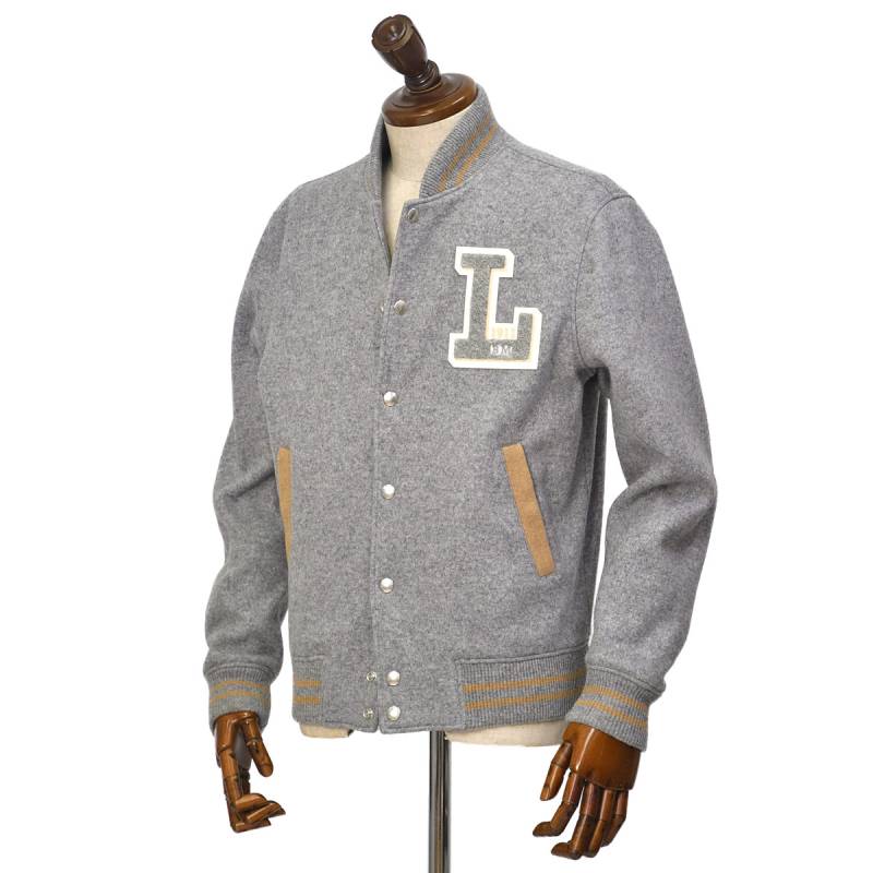 L.B.M.1911【エルビーエム1911】スタジャン アワードジャケット 9379 55704 1 グレー×キャメル