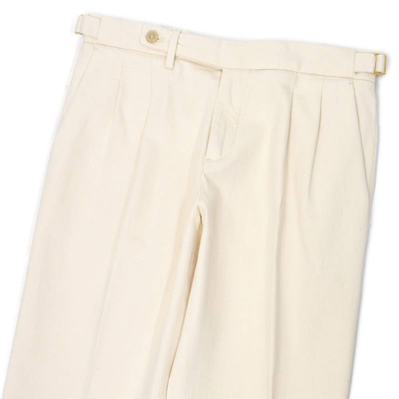 BRIGLIA1949【ブリリア1949】ツープリーツ サイドアジャスター デニムスラックス QUARTIERI D 400195 103 コットン ストレッチ ホワイトデニム