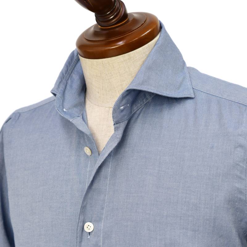 Finamore【フィナモレ】シャツ PIERO BALI A4000 8 コットン フランネル ツイル ブルー