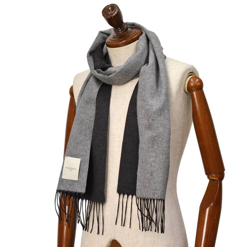 PIACENZA【ピアチェンツァ】リバーシブルマフラー MIRROR 82249/44 251 シルク カシミヤ チャコールグレー×ネイビー