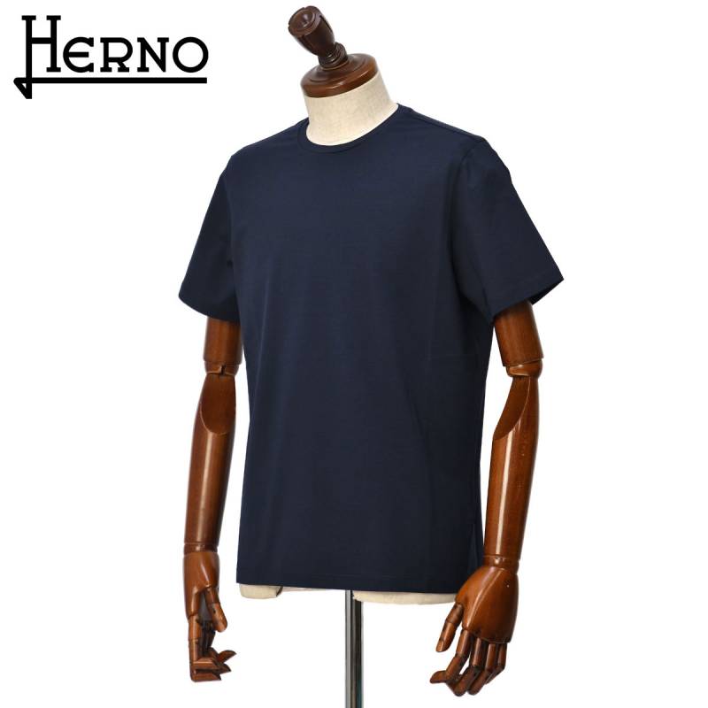 HERNO【ヘルノ】クルーネックカットソー JG000174U-52003 9200 コットンストレッチ ジャージー ネイビー