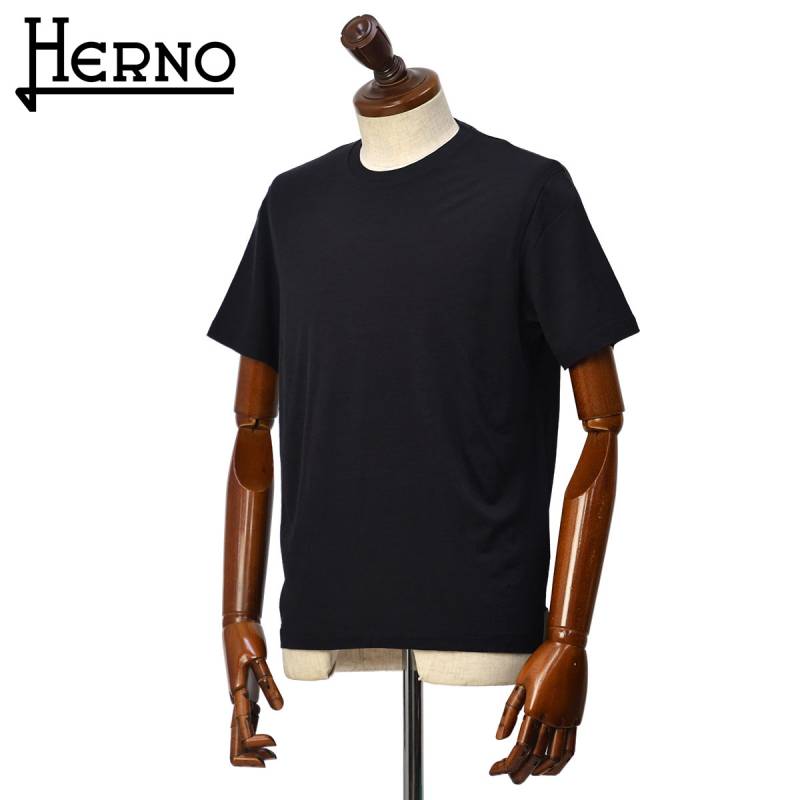 HERNO【ヘルノ】クルーネックカットソー JG000174U-52003 9300 コットンストレッチ ジャージー ブラック