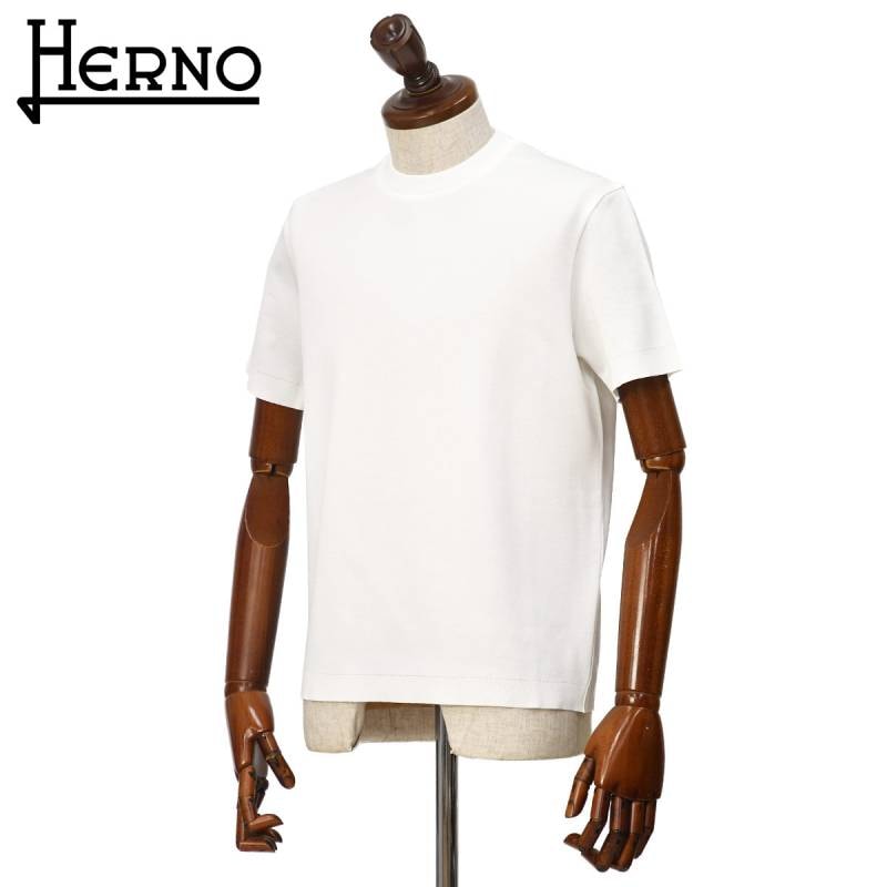 HERNO【ヘルノ】クルーネックジャージーTシャツ JG000206U 52059 1000 コットン ホワイト