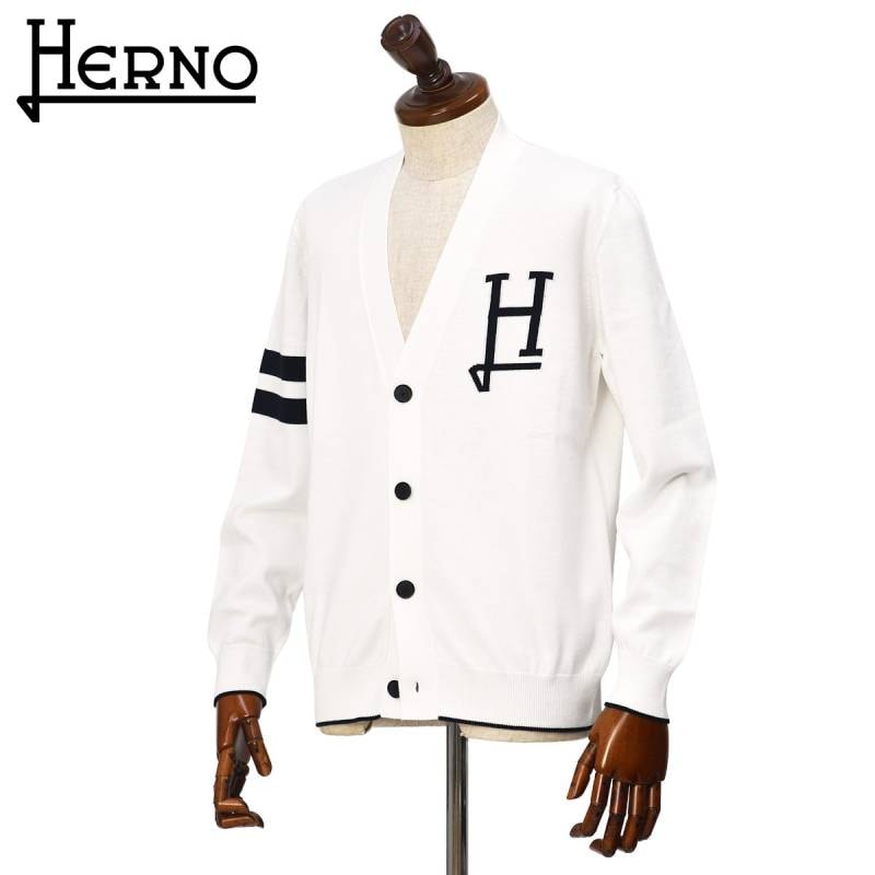 HERNO【ヘルノ】コットンニット ロゴカーディガン MC000211U 72140 1000 ホワイト
