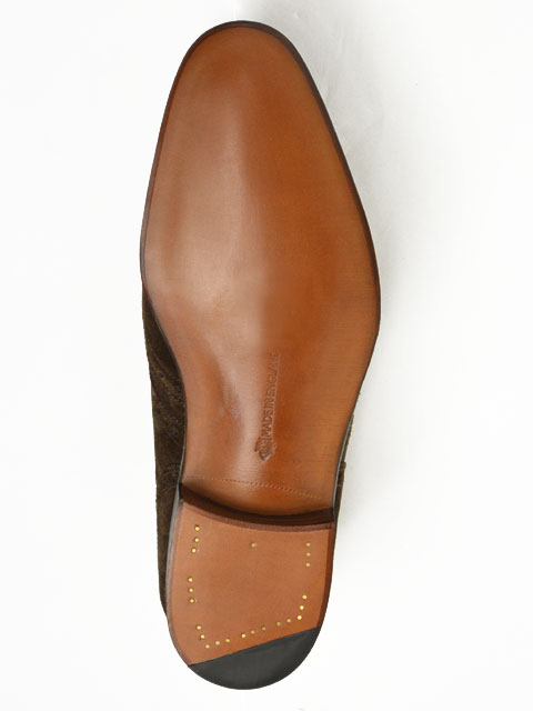 靴底とアッパーの縫製に、既成靴ではあまり見かけないヒドゥンチャネルソール(縫い目を靴底に見せない仕上げ)を使用しており、普段あまり見ないようなところにも気を配っています。