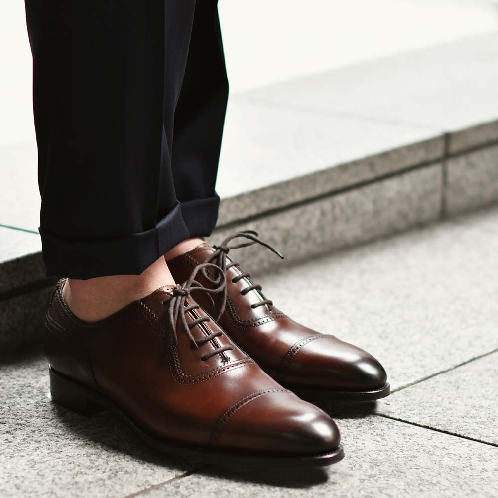 控え目なパンチドキャップトゥがオーセンティックな英国靴らしさを醸し出し、アンティークフィニッシュが艶気を醸し出します。