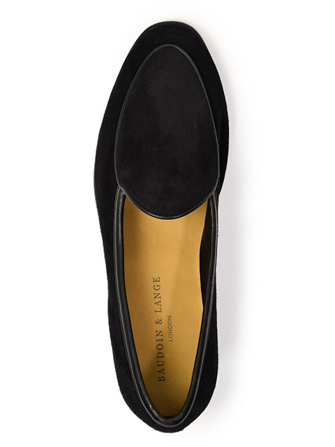 ベルジャンシューズは、トウ(つま先)にパイピング、甲にリボンやタッセルなどを施したエレガントなデザインで、ヨーロッパ貴族の室内履きからインスパイアされたスリッポンシューズ。