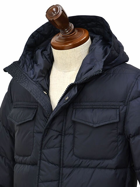 フロントには4つのフラップポケット、内側にもファスナー付きポケットが配され、シンプルながら抜群の収納力とHERNO【ヘルノ】らしいデティールが詰まっています。