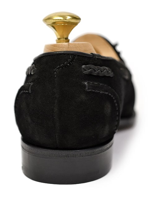 丁寧にカットされたタッセル、編み込みが美しいサイドのレザー、トゥとヒール部分に施されたモカなど