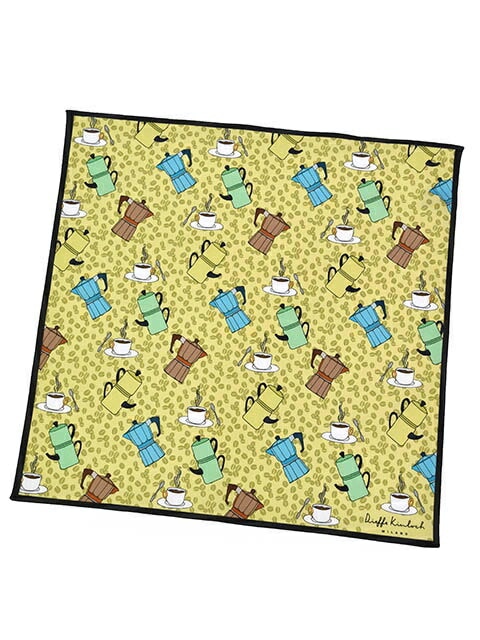 Dieffe Kinloch【ディエッフェ・キンロック】プリントハンカチ CAFE コットン ブラウン×ベージュ