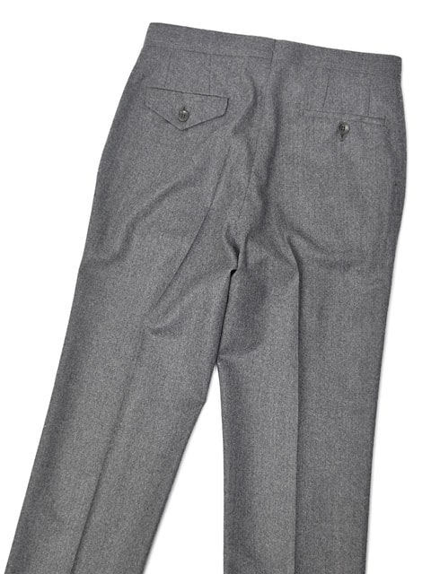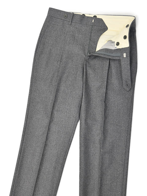 ワンプリーツ/1プリーツ ベルトレス サスペンダー用ボタン付属 バックポケットフラップ付(左側) |