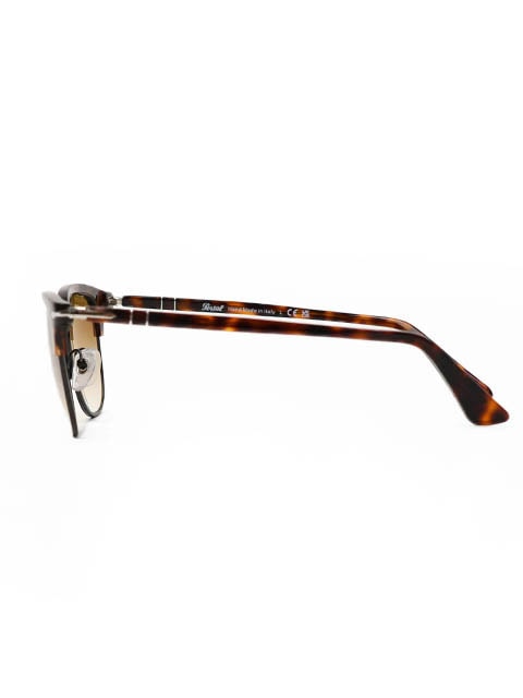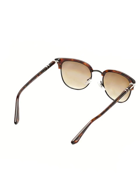 Clubmaster型サングラスはブランドによってデザインが異なることで有名ですが、Persolは、ブリッジとリムの半分をメタル、リム上部とテンプルはアセテートにてデザイン。