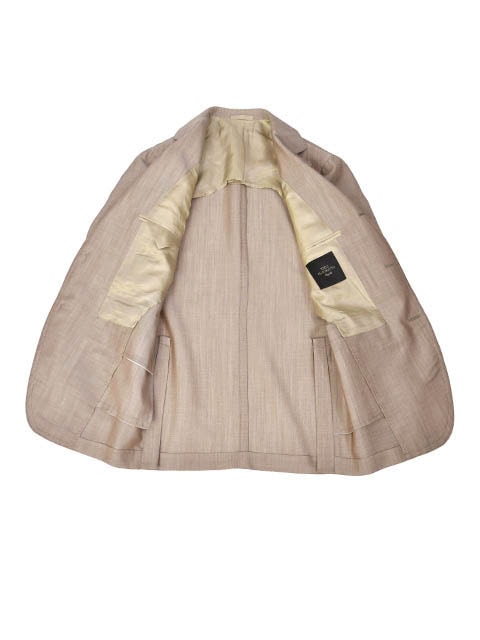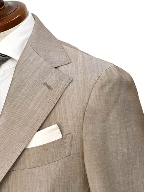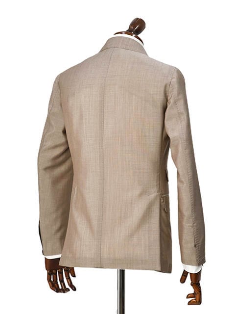 ハーフキャンバス(肩パッド有) 3ボタン段返り 袖口アンフィニッシュド(袖口用付属ボタン9個) サイドベンツ チェンジポケット フラップポケット ラペル幅約9.5cm ダブルステッチ ワンプリーツ 裾未処理 |