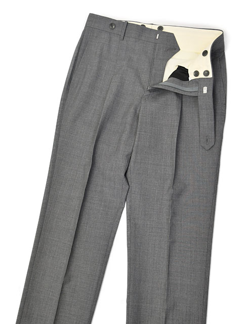 ワンプリーツ/1プリーツ ベルトレス サスペンダー用ボタン付属 バックポケットフラップ付(左側) |
