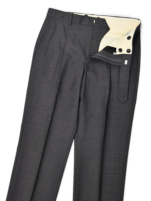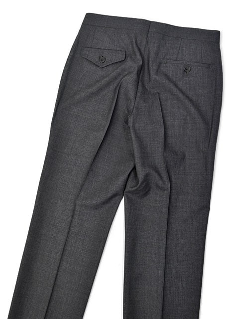ワンプリーツ/1プリーツ ベルトレス サスペンダー用ボタン付属 バックポケットフラップ付(左側) |