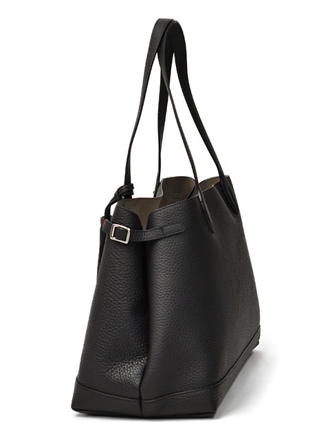 内側には片面にポケットが1室付いており、サイドのレザーストラップを外すと収納力も増加する等の実用性も兼ね備えています。