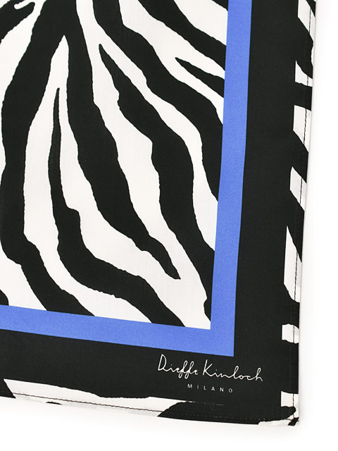 Dieffe Kinloch【ディエッフェ・キンロック】プリントハンカチ Zebra コットン ブラック×ホワイト