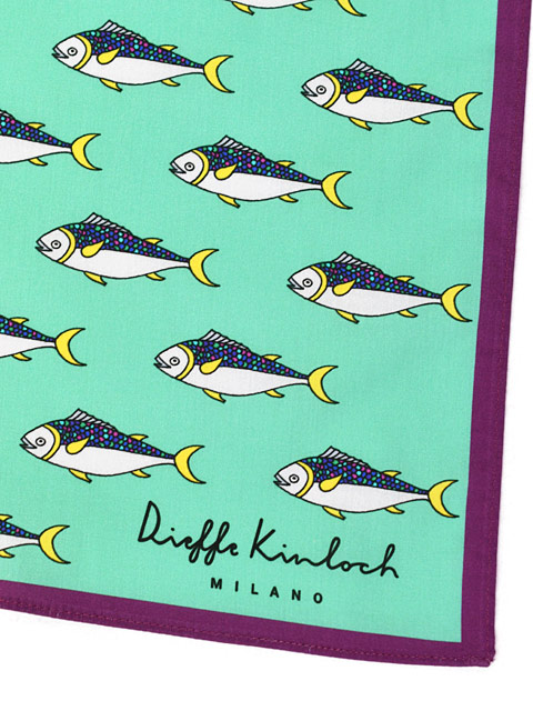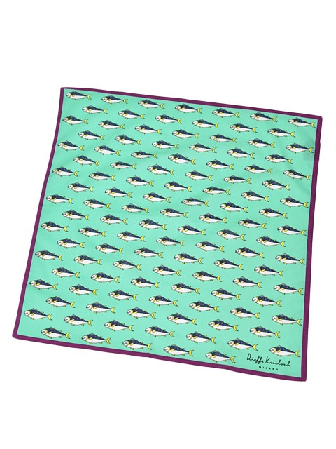 Dieffe Kinloch【ディエッフェ・キンロック】プリントハンカチ Sardines AO コットン ターコイズ×パープル