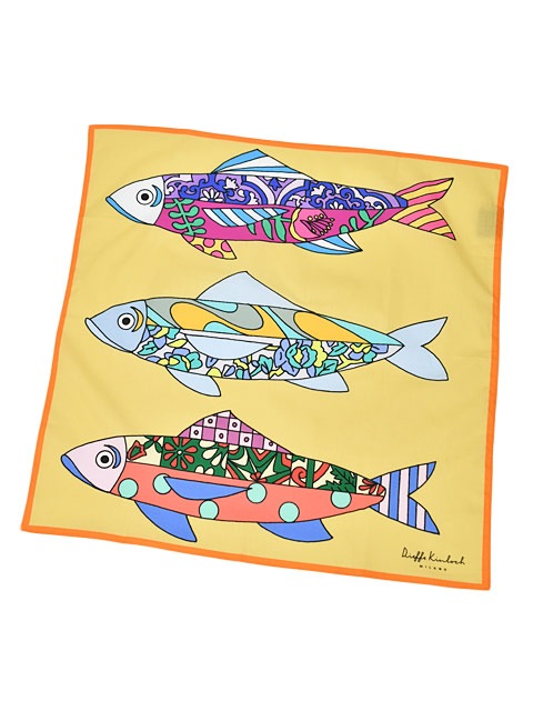 Dieffe Kinloch【ディエッフェ・キンロック】プリントハンカチ Sardinhas コットン サンド×オレンジ