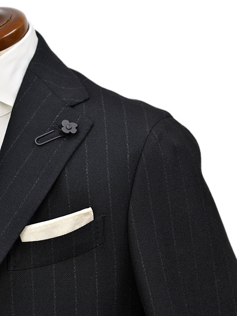 やや広めのラペル、バルカポケットなどからはイタリアンクラシックの良い香りを感じるものの、現代的なフィッティングや佇まいが意識されており、都会的にお召いただけます。