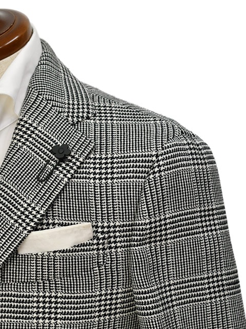 やや広めのラペル、バルカポケットなどからはイタリアンクラシックの良い香りを感じるものの、現代的なフィッティングや佇まいが意識されており、スマートにお召いただけます。