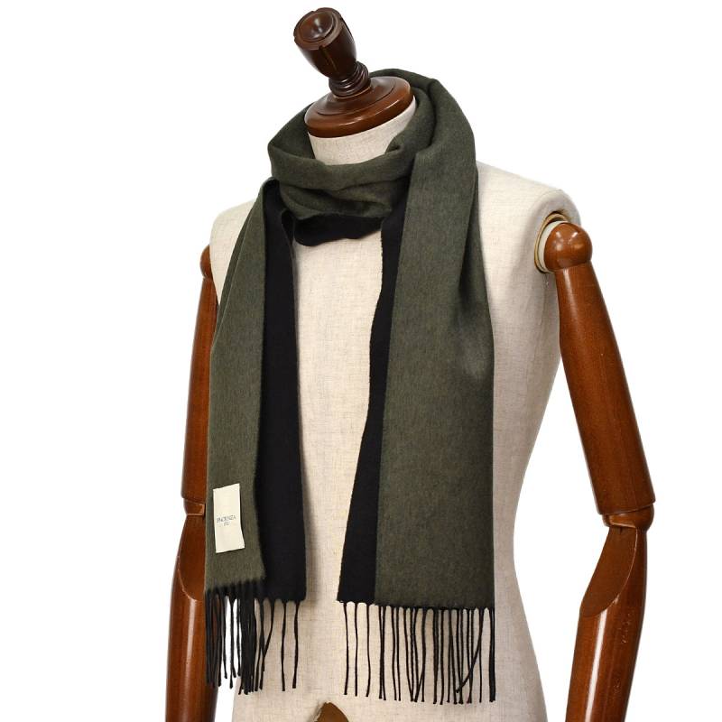 そんな最高級な素材をたっぷりと使用したマフラーですが、幅が30cmのタイプ故に首元のボリュームをスッキリと魅せてくれるので、ビジネスシーンでも端正な面構えに。