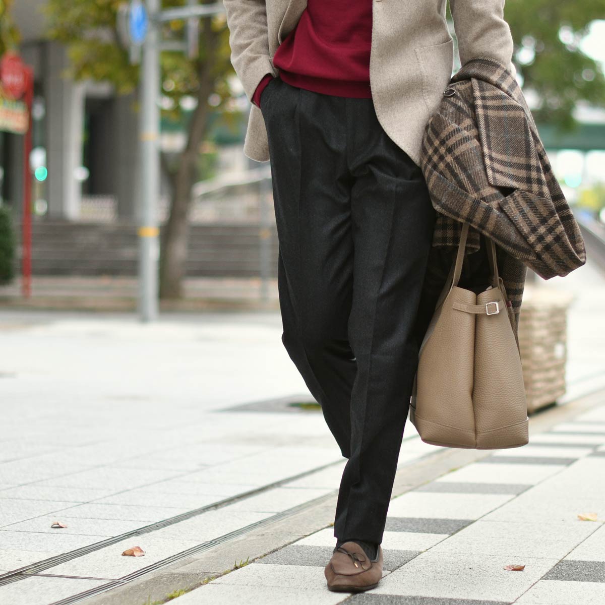 程よくゆとりのある腰回りは昨今のトレンドであるクラシカルさを思い起こさせ本物のクラシックを体現するには、ROTA【ロータ】のパンツを履かなければ語れません。