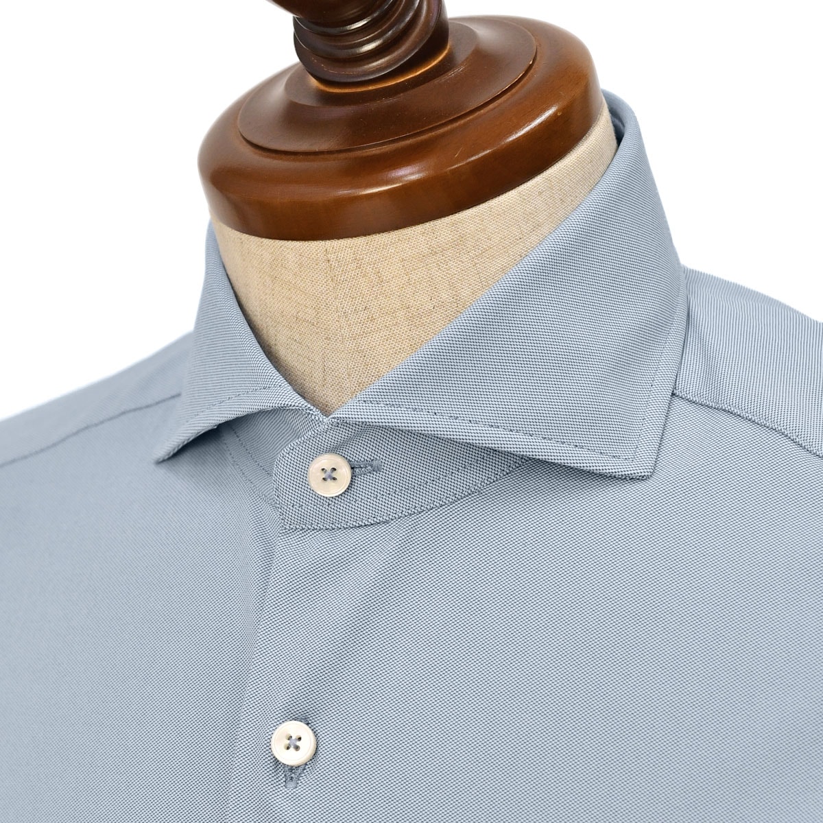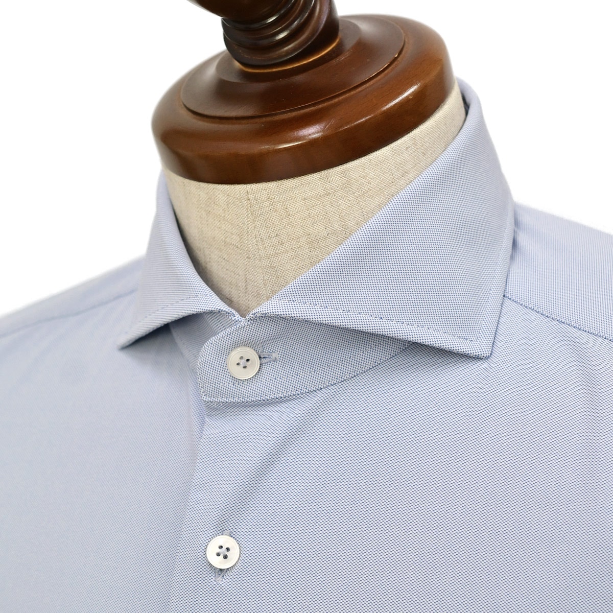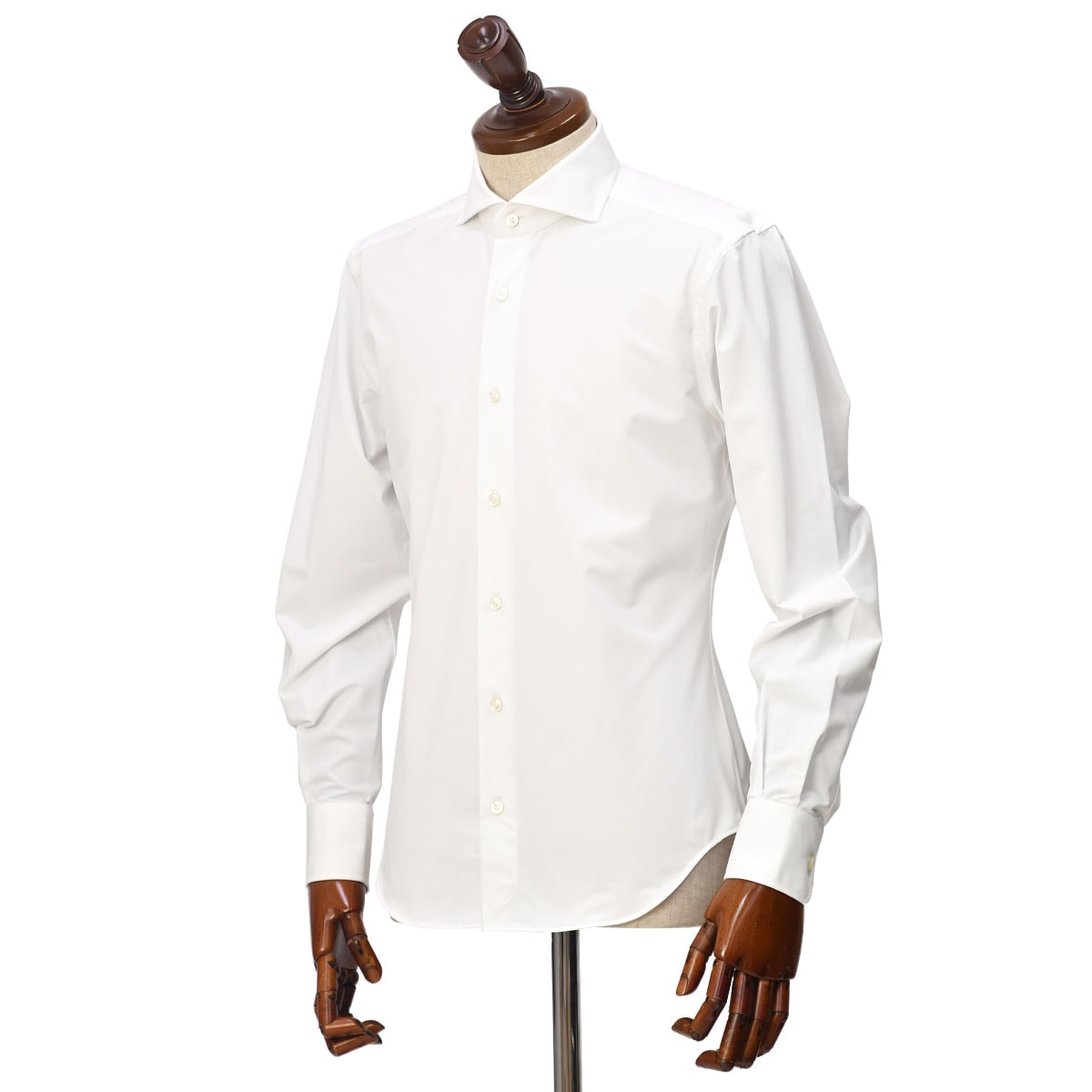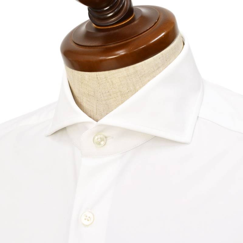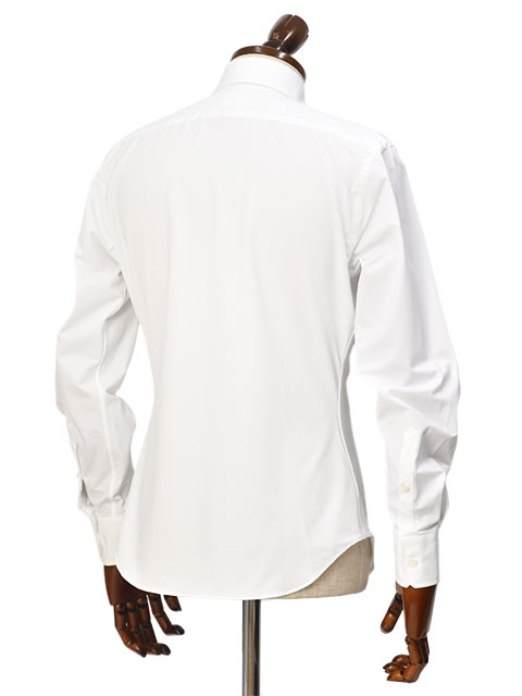 ボディシルエットはスリムなフィッティング。整った襟型も特徴的で、ノーネクタイ時の立ち上がりも綺麗です。