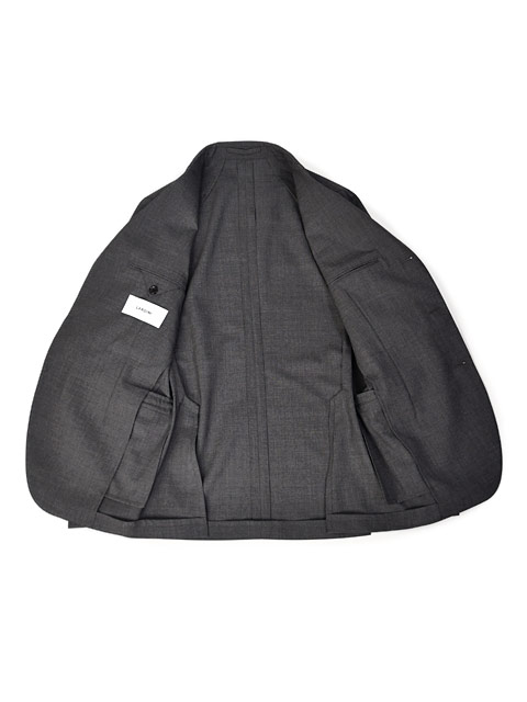 段返り3ボタン 袖口アンフィニッシュド(袖口用付属ボタン9個) サイドベンツ ラペル幅8cm ワンプリーツ/1プリーツ 目付: 200g |