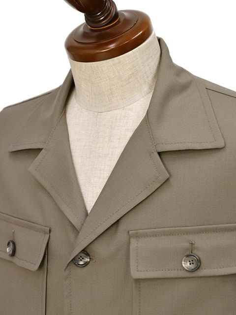 2025SSコレクションより初登場のこちらのモデルは、適度にサファリジャケット特有のディテールを省略し、よりモダンに作り上げられた一着。