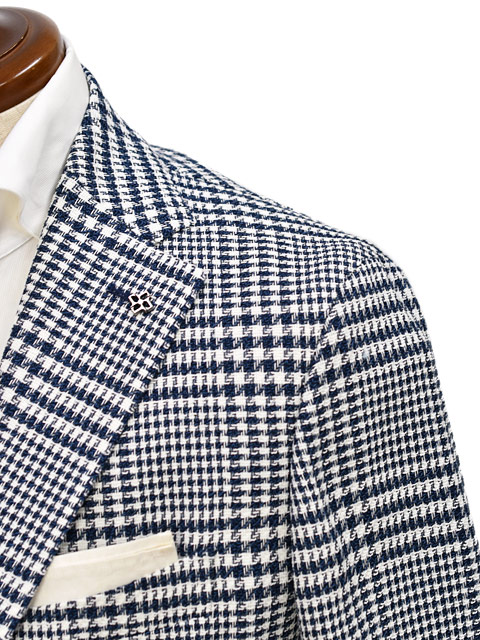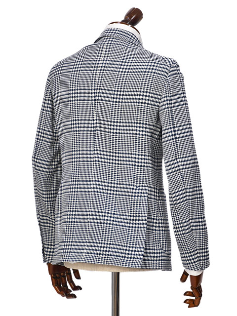 ネイビーとホワイトを使ったグレンチェックの一着。柄の整った端整な見た目が特徴です。