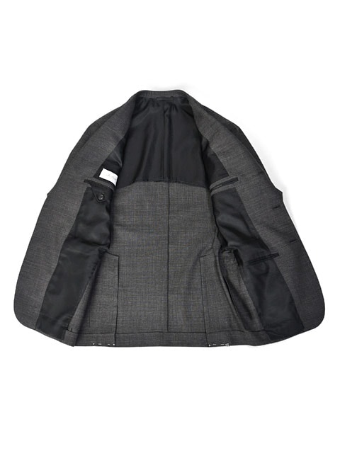 ベーシックなチャコールグレー無地のスーツを上質なカノニコの生地を使用する事で差がつく仕上がりの1着。