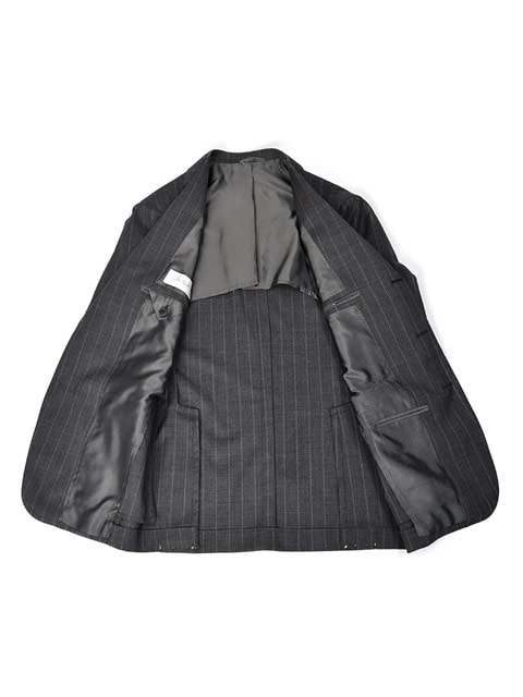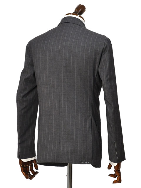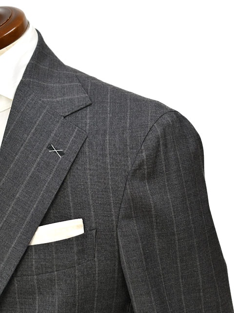 最も使い勝手の良いミディアムグレーにややワイドピッチなチョークストライプがスタイリッシュな1着。