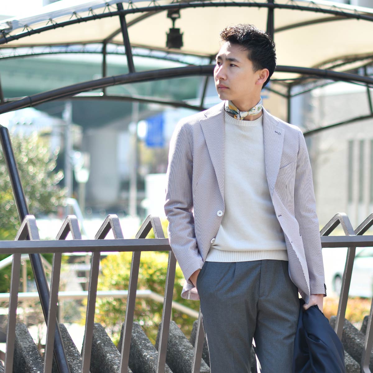 清涼感溢れるシアサッカーは夏のジャケットとして大変おすすめ。