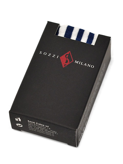 現在は、二代目であるフランコ・ソッツィ(Franco Sozzi)が社長を務めており、ロングホーズと言えばイギリスのパンセラ、イタリアのソッツィ・カルチエ(Sozzi Calza)と言われるほどイタリアンクラッシックを代表する伝統的な靴下です。