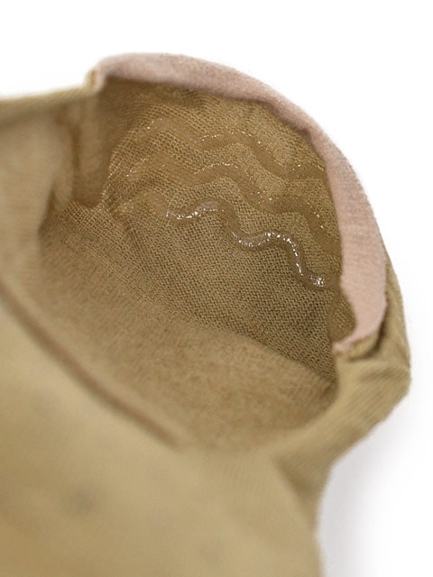 踵裏にはシリコンが貼ってある為、着用時に脱げにくくなっております。
