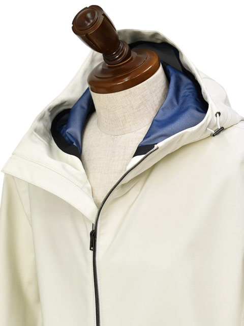 裏面に張られたメンブレンがフードの内側から覗くデザインは、小粋で魅力的です。